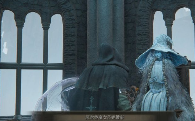 4、來到魔法塔頂部可以見到之前送給我們召魂鈴的魔女蕾娜,通過交談後我們得知她的真名叫做菈妮。反覆與其對話後可以從她那裡接受委託,和半狼布萊澤等人聯手尋找「永恆之城」諾克隆恩的寶藏。