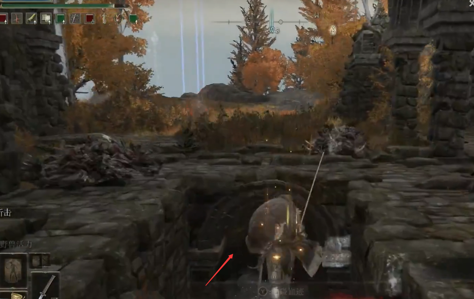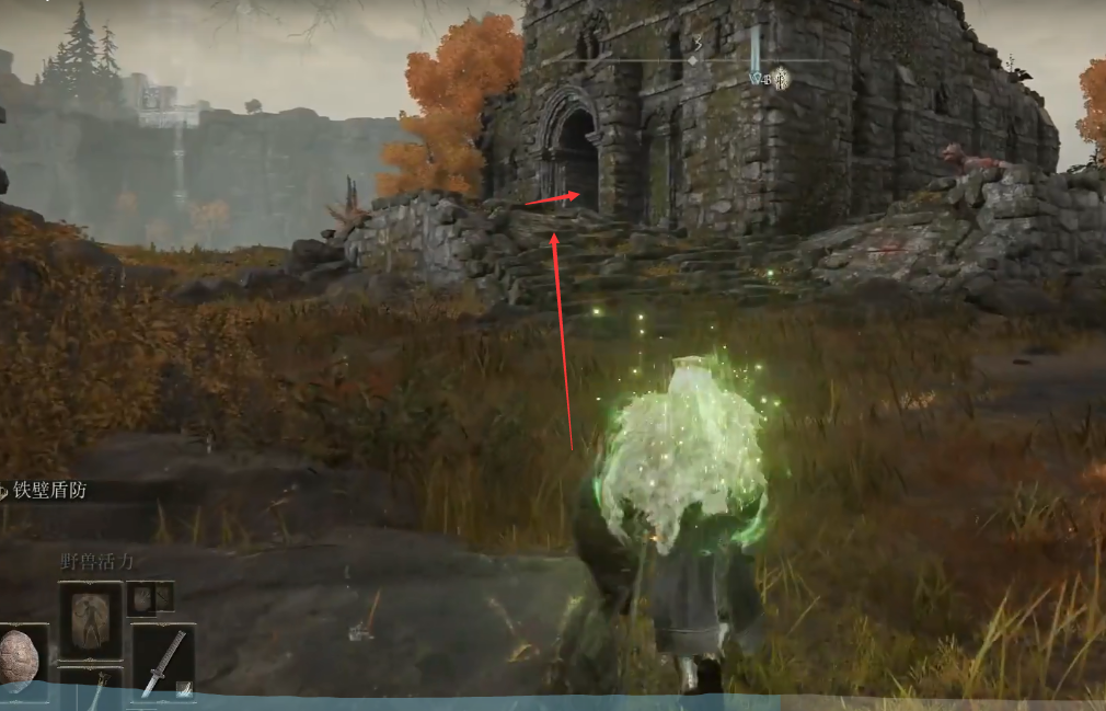 2、然後從賜福的右邊走,會看到前面有一座廢墟,如下圖,