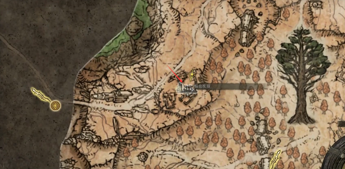 戰技獲得位置在如下地圖中左上角的一處高原上的廢墟。