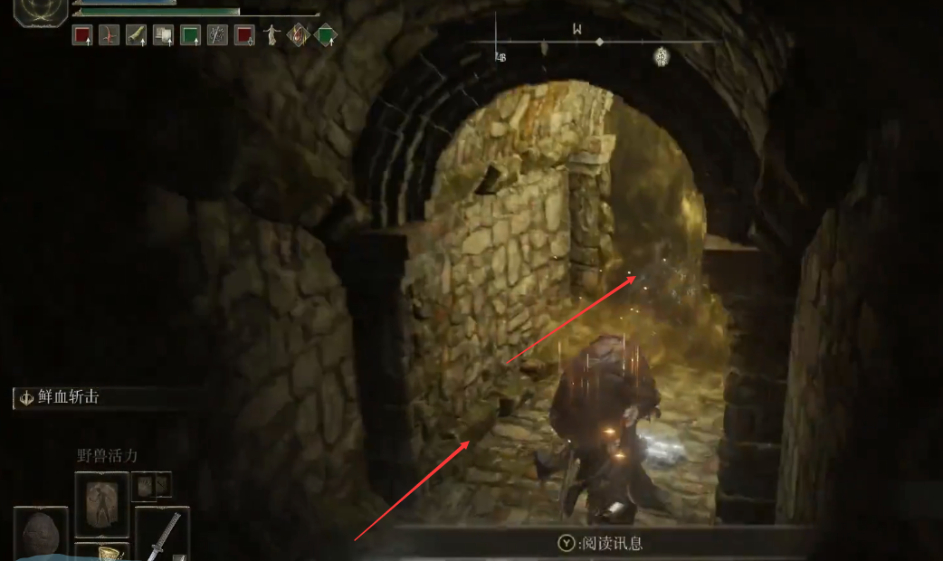 1、首先我們傳送到下面地圖中的「蠕血廢墟」賜福處,