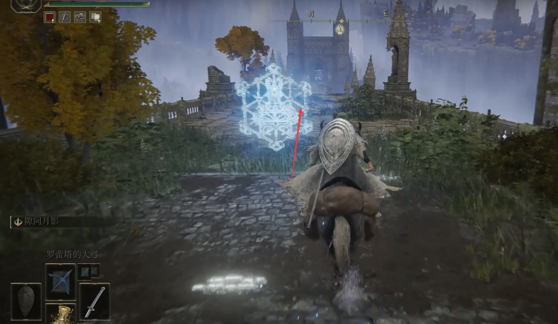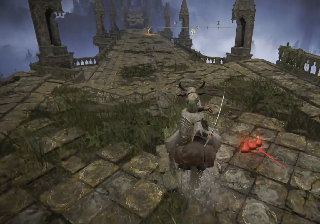 4、在右邊看到發紅光的三個石塊旁邊停下來,如下圖;