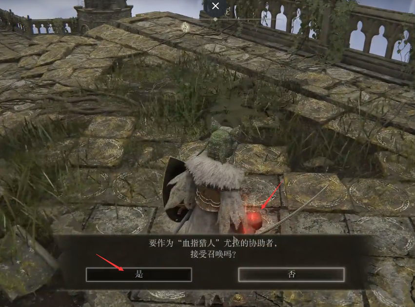 5、靠近它會觸發下圖中的界面提示,我們點擊確定作為「血指獵人」的協助者;