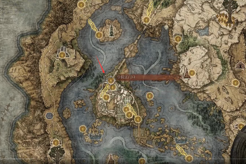 1、我們先打開湖之利耶尼亞地圖,找到下面地圖上的學院正門口;
