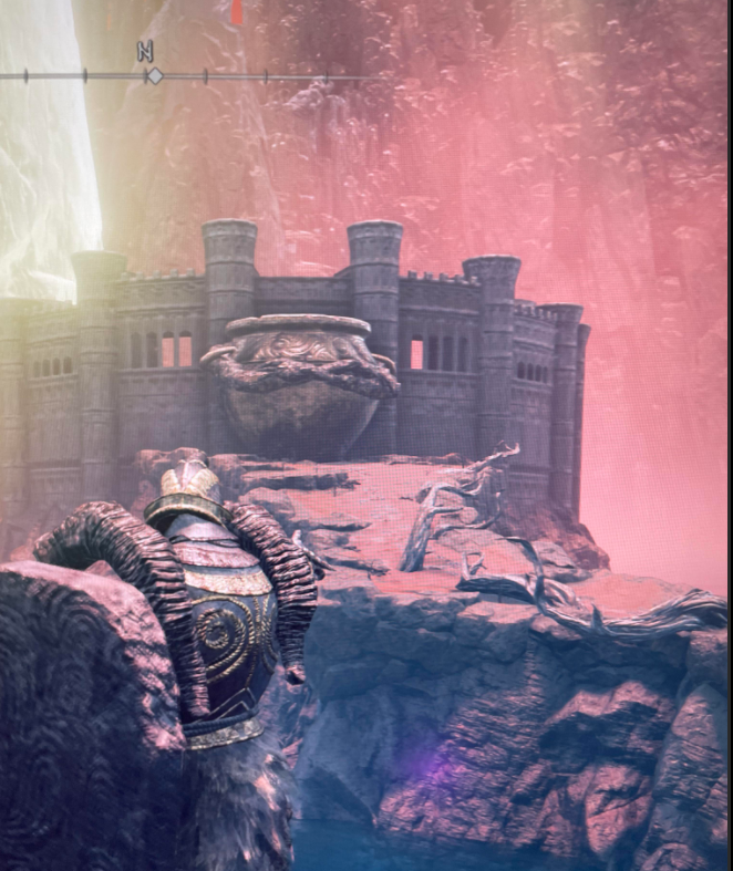 寧姆格福神授塔坐落在寧姆格福的北方傳送至【升降梯旁房間】篝火出門向紅標處跑酷順著路到達如圖位置並向紅標處進發並走到盡頭,橋上有3名巨人(可無視),而橋的盡頭有一個傳送門,進入傳送門就到達神授塔門口。寧姆格福神授塔可激活【葛瑞克的大盧恩】