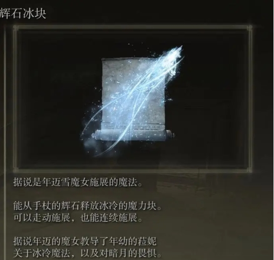 艾爾登法環輝石冰塊的獲得方式是:可在利耶尼亞西北部的塞爾維斯魔法塔和NPC學習(或者他死後把鈴珠交給大賜福孿生老嫗學習)。
