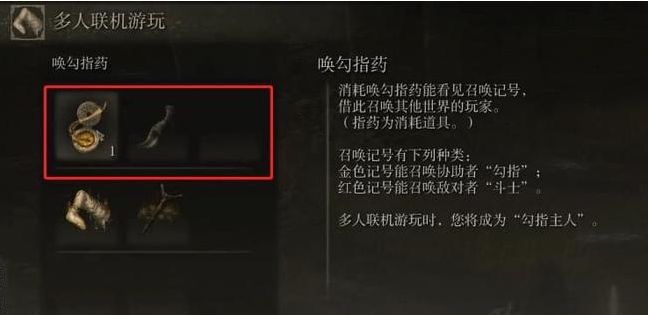 首頁 艾爾登法環 問答 艾爾登法環怎麼搖人? 2022-08-10 1、首先在遊戲當中,按下op鍵,會有多人聯機遊玩選項;2、點進多人聯機遊玩,會有很多道具,選擇喚勾指葯;3、消耗這個葯後就能看到別的玩家留下的召喚記號,通過這個記號去召喚其他的玩家。