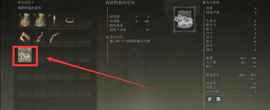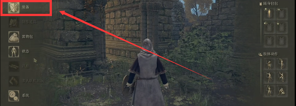 首頁 艾爾登法環 問答 艾爾登法環骨灰怎麼裝備? 2022-08-11 1.點擊裝備。2.選中圖中紅框中的欄框。3.進入後點擊想要裝備的骨灰即可。4.裝備後退出裝備界面,遊戲界面左側有圖中所示的標誌即為裝備骨灰成功。