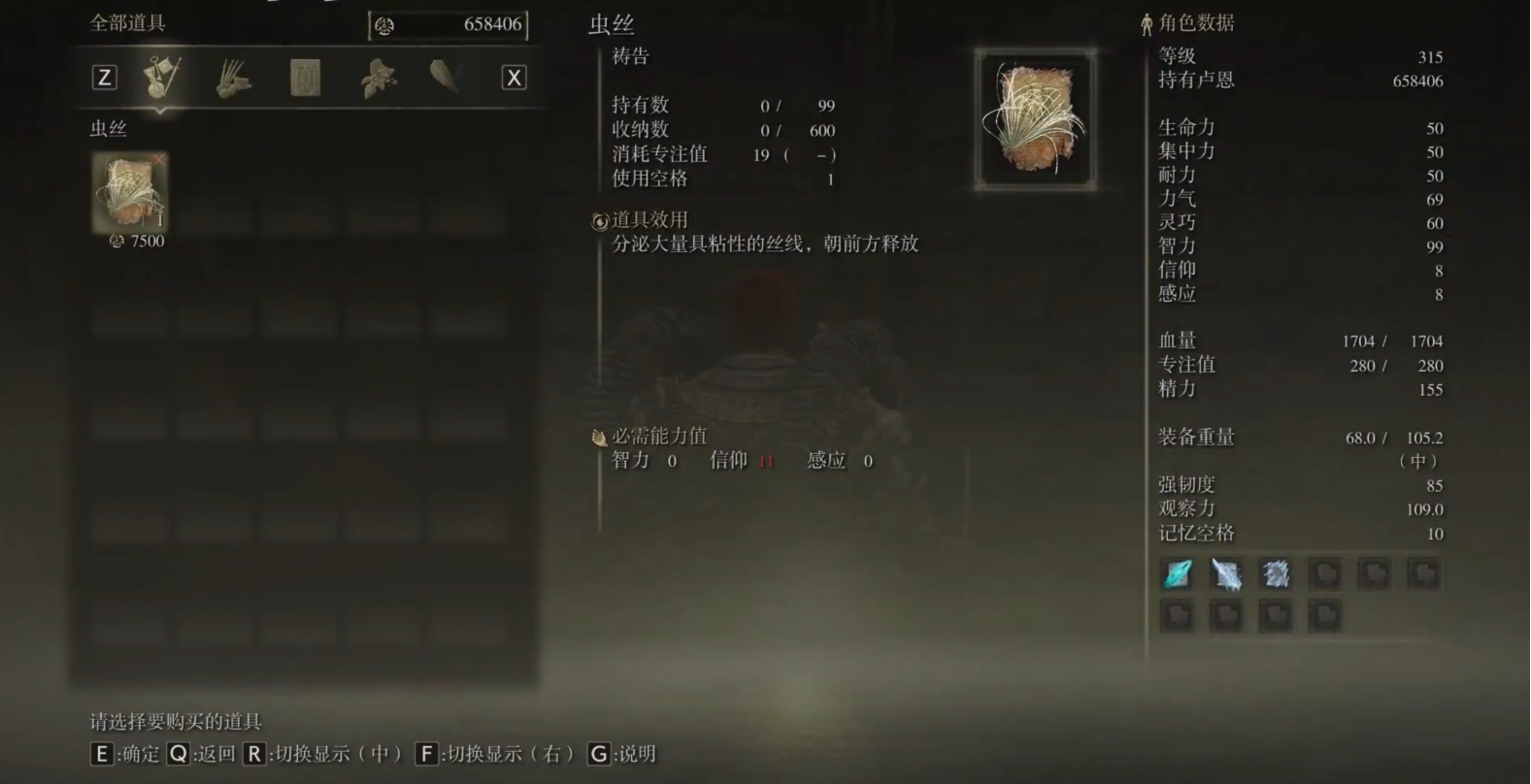 首頁 艾爾登法環 問答 艾爾登法環蟲絲在哪獲取? 2022-08-11 艾爾登法環蟲絲在需要格威那裡學習禱告。這個禱告的獲取需要完成米莉森的支線任務,在日蔭城獲取義手後交給米莉森,最後到格威那裡購買就可以購買蟲絲了。