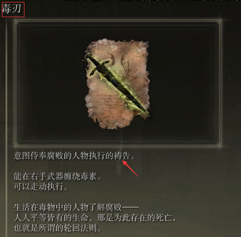 首頁 艾爾登法環 問答 艾爾登法環毒刃記憶怎麼用? 2022-08-11 首先我們要知道,毒刃在該遊戲中是一種禱告,禱告需要藉助觸媒指頭聖印記才能使用。使用方法:1、右手裝備普通的武器,如下圖,右手裝備普通的巨劍;2、左手裝備指頭聖印記,如下圖;3、再正常按右鍵就可使用,持續時間可達一分鍾。