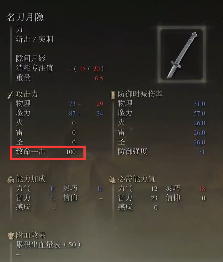 首頁 艾爾登法環 問答 艾爾登法環月影太刀怎麼用? 2022-08-11 月影太刀的致命一擊幾率為100,在有藍的情況下,滑鼠右鍵釋放月影太刀的技能隙間月影,攻擊距離比正常太刀要長出一倍左右,而且對於韌性低的怪效果會更好,比如說龍族,基本上一個隙間月影就可以觸發一次致命一擊。
