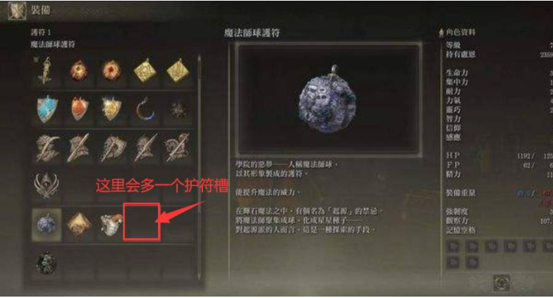 首頁 艾爾登法環 問答 艾爾登法環護符皮袋怎麼裝備? 2022-08-11 這個護符皮袋無需點擊使用,自動生效。當你獲得圖中護符皮袋的這個道具時,就能直接增加一個護符格子。如下圖所示,箭頭所指 的地方會增加一個護符槽。