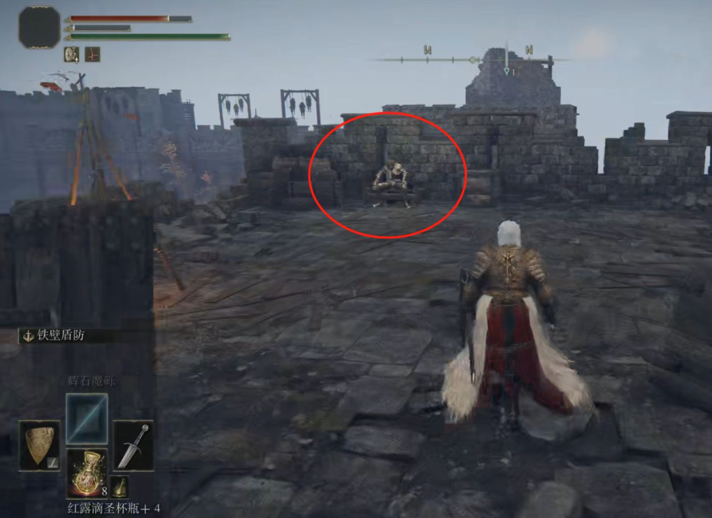 4、接著在城牆頂找到她的父親,進行對話;交談可以獲得犧牲細枝,讓玩家死亡時避免一次盧恩損失,細枝會消失。