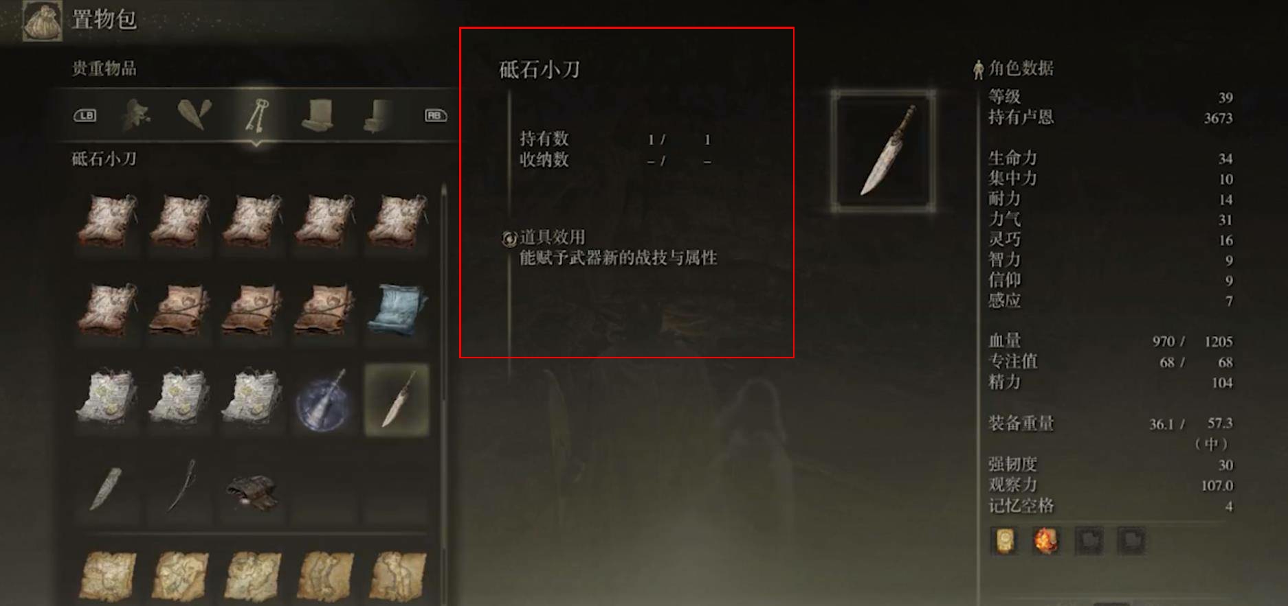 砥石小刀想要用的話只需要在賜福那裡坐下,然後選擇戰灰選項,最後選擇戰灰給武器裝備上就可以了,不過戰灰有可能會影響攻擊力,需要注意。