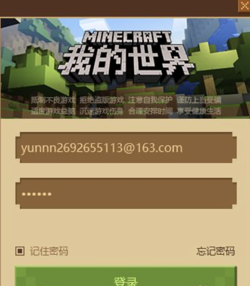 6、然後將剛才我們注冊的我的世界的賬號和密碼輸入到登錄界面,點擊登錄就可以享受我的世界了。
