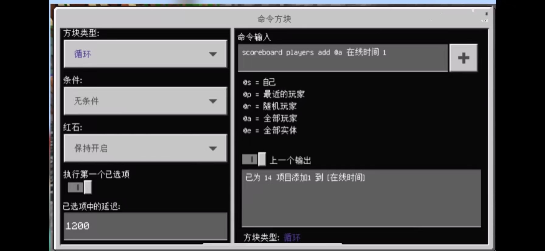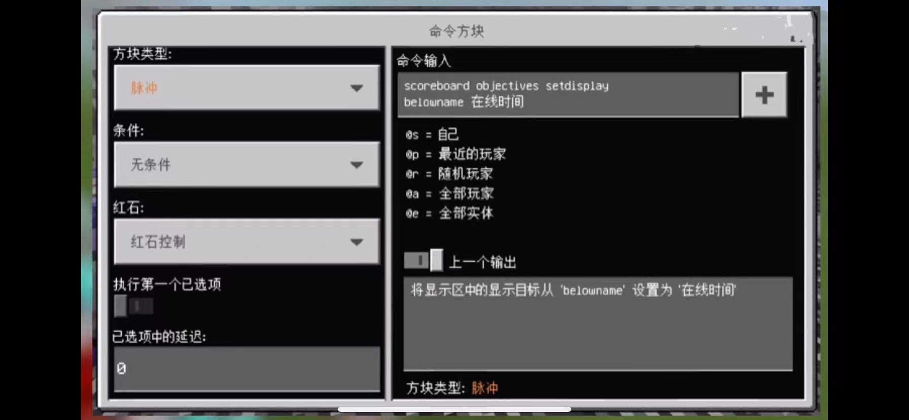 首頁 我的世界 問答 我的世界怎麼看顯示在線時間? 2022-08-16 1、先創建一個名為"在線時間"的記分版。2、將積分項顯示在玩家名字下方。3、每秒(或每分鍾)給所有在線玩家加1分。4、所有指令設置好就可以查看在線時間了。