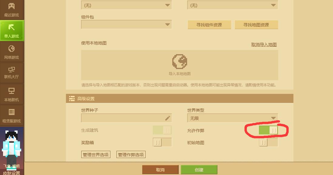 2,接著我們往下滑動,找到允許作弊,打開這個按鈕就可以開啟作弊碼了。
