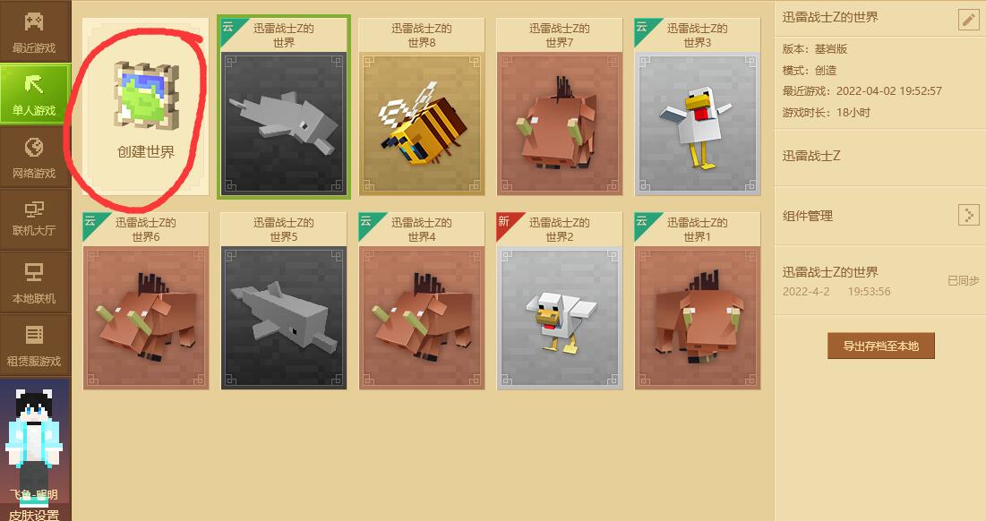 1,首先我們進入我的世界創建遊戲的界面,點擊創建世界。