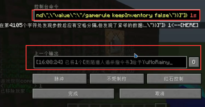 1、遊戲指令nd"'"valuel"A"/gamerule keepInventory false"))]"],在控制命令台輸入。