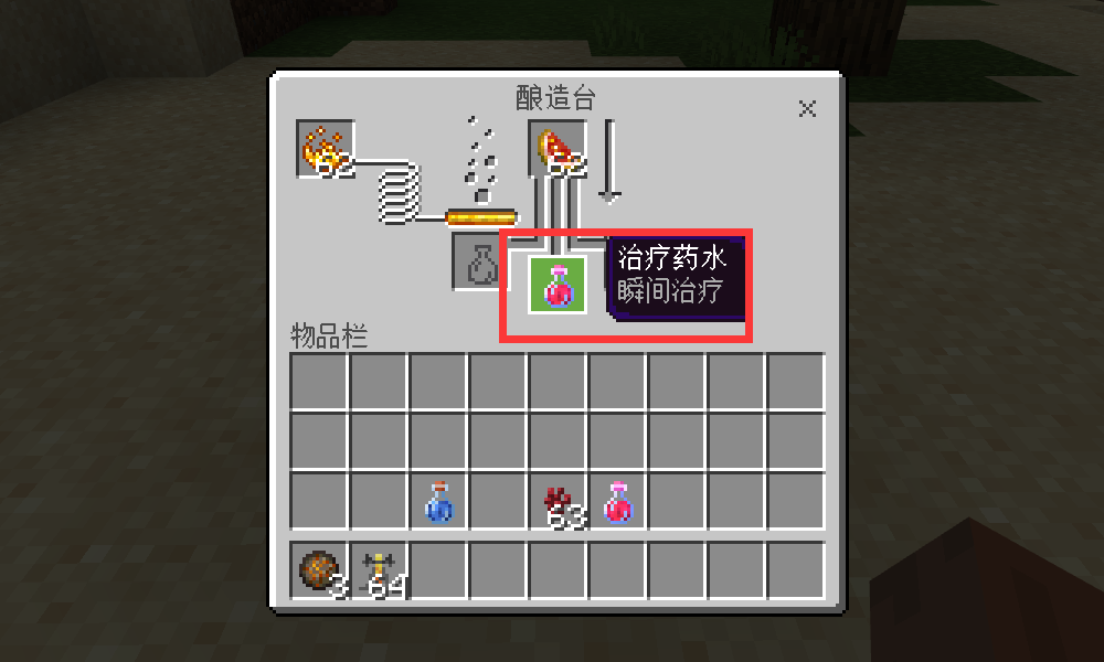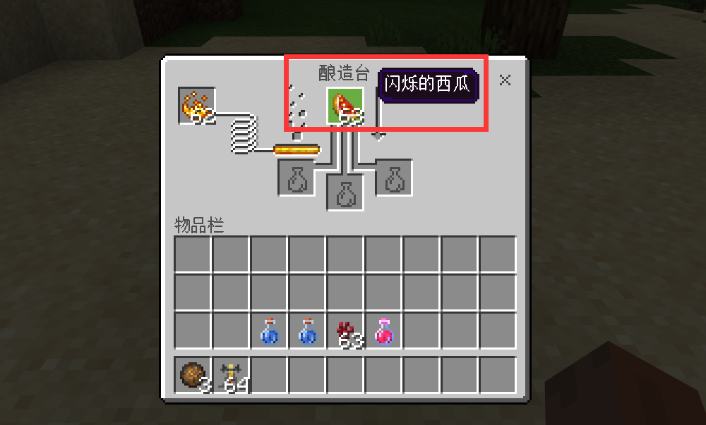 首頁 我的世界 問答 我的世界生命恢復藥水怎麼做? 2022-08-17 1、進入遊戲,點擊打開釀造台。2、將烈焰粉放入釀造台左上角的格子里。3、再將閃爍的西瓜放入釀造台最上面的格子中。4、在釀造台的最下面其中一格放入粗製的藥水。5、等待釀造台製作完畢後,粗製的藥水就會變為治療藥水。