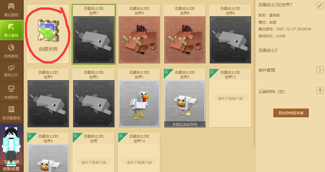 首頁 我的世界 問答 我的世界網易怎麼切換版本? 2022-08-18 點擊創建世界,然後在界面里換一個版本就可以了。1,首先我們進入單人遊戲界面,點擊左側的創建世界。2,然後點擊右側遊戲版本,更換一個版本即可。