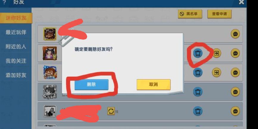 首先找到你要刪的那個好友,再點擊他上面的那個垃圾桶圖標,這時候系統會提示是否刪除好友,點擊刪除就可以把好友刪除了。