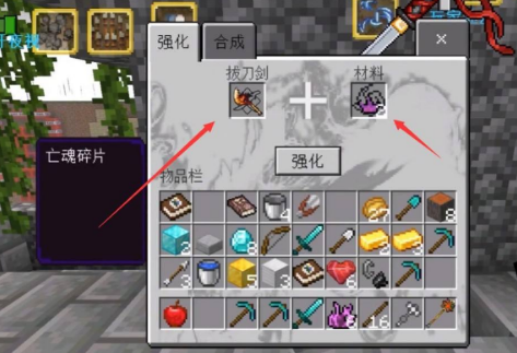 3、放入強化升級的裝備和需要的材料,如下圖所示;