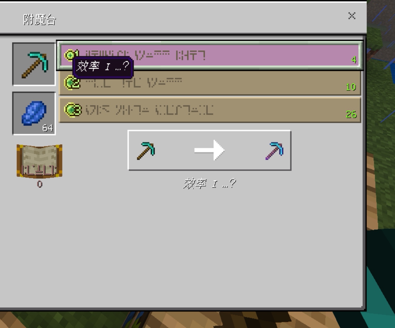 首頁 我的世界 問答 我的世界附魔台怎麼刷新附魔效果? 2022-08-20 有兩種方法刷新附魔效果1、在附魔台的周圍增加書架,書架的數量越多,附魔屬性越好,附魔效果自然就刷新了。(1)0書架時(2)9書架時2、將附魔物品附上附魔效果,下一次附魔效果就會刷新。(1)第一次附魔(2)第二次附魔