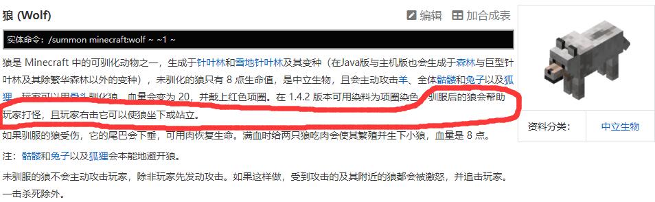 2,然後找到狗的說明,也就是馴服後的狼,作用為幫助玩家打怪。