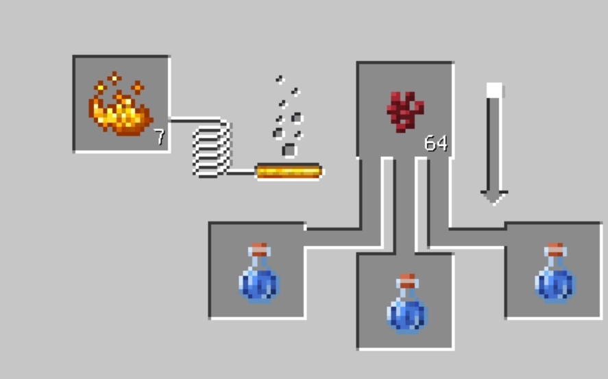 首頁 我的世界 問答 mc治療藥水怎麼釀造? 2022-08-21 1、需要製造釀造台。由一個烈焰棒和三個圓石組成。2、左邊放置烈焰粉,右邊放置下界龐,下面放三瓶藥水。製造粗糙的藥水。3、左邊繼續放烈焰棒,右邊放需要製作各種藥水的原材料,下面是粗糙的藥水,變可以得到想要的藥水了。