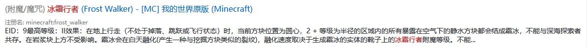 首頁 我的世界 問答 我的世界冰霜行者有什麼用? 2022-08-21 作用為在地上行走,2 等級為半徑的區域內的所有暴露在空氣下的靜水方塊都會結成霜冰。1,首先我們搜索並進入冰霜行者的相關說明。2,然後就可以在界面上方發現冰霜行者的作用了。
