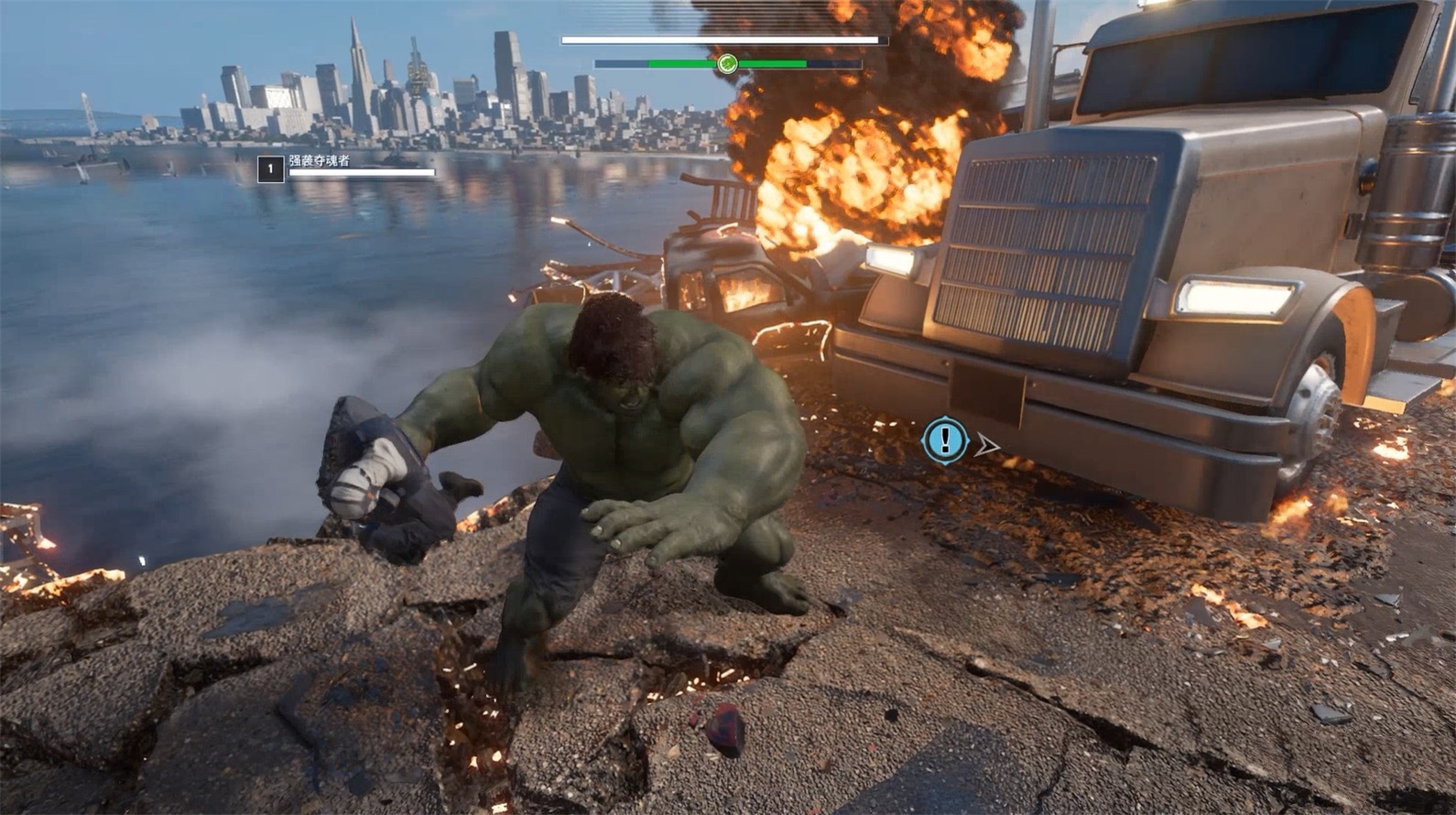 長按輕攻擊鍵,浩克可以將小型敵人抓在手中蹂躪。