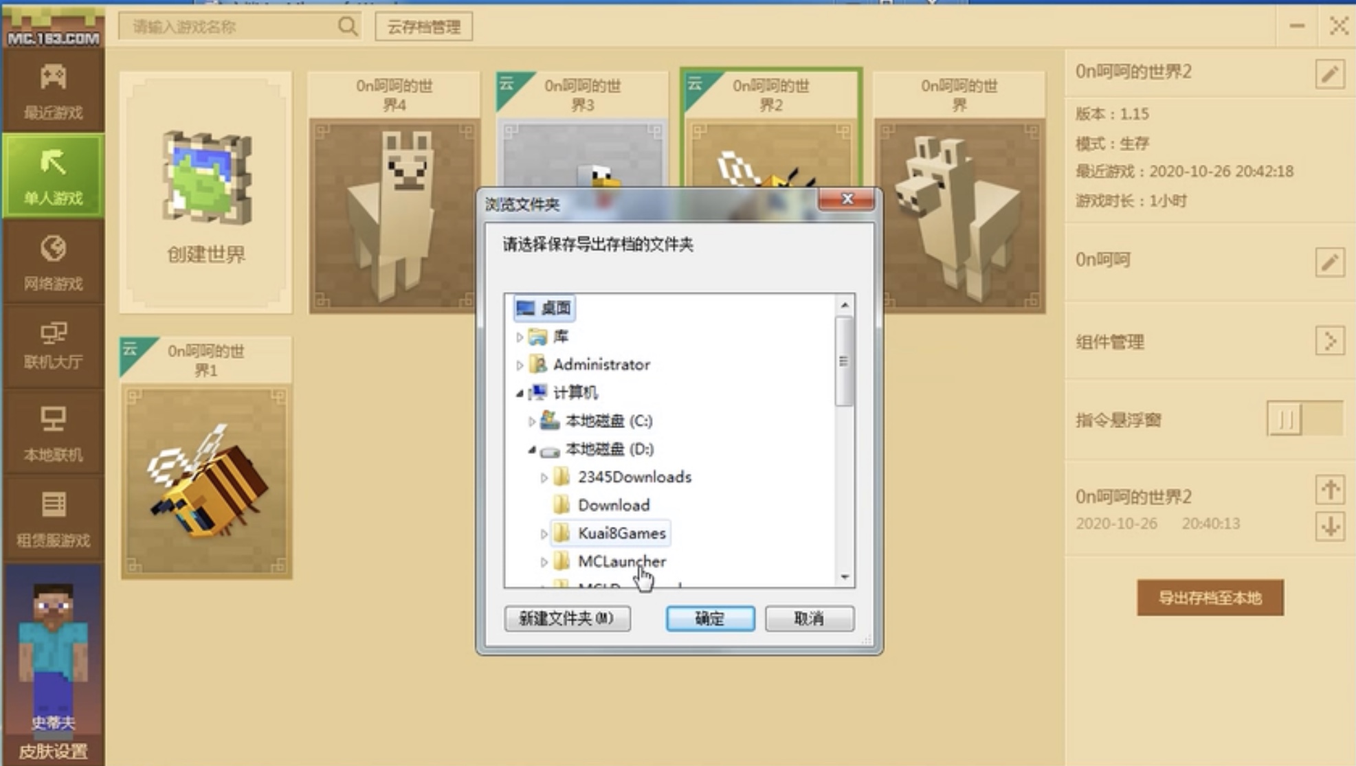 首頁 我的世界 問答 我的世界怎麼分享自己的地圖? 2022-08-22 1.選擇你想要分享的地圖。2.點擊右下角處的導出存檔至本地按鈕。3.選擇桌面為放置的位置,導出後的地圖可以通過聊天工具,雲端等進行分享。