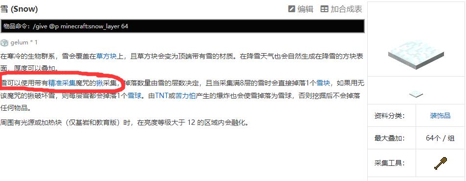 使用帶有精準採集魔咒的鍬採集就可以獲得雪。