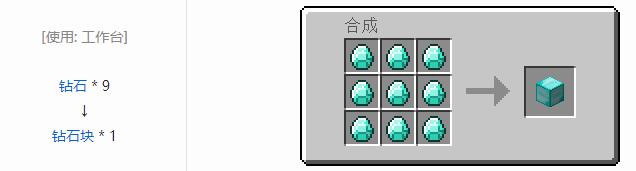 2,接著我們需要使用工作台,用九個鑽石合成一個鑽石塊。