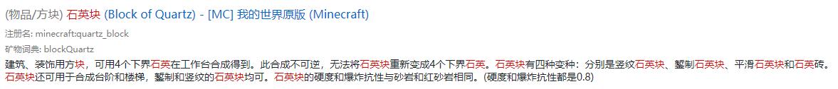 首頁 我的世界 問答 我的世界石英塊英文是什麼? 2022-08-23 英文是Block of Quartz。1,首先我們搜索並進入石英塊的相關說明。2,然後就可以在界面左上角發現,石英塊的英文是Block of Quartz。