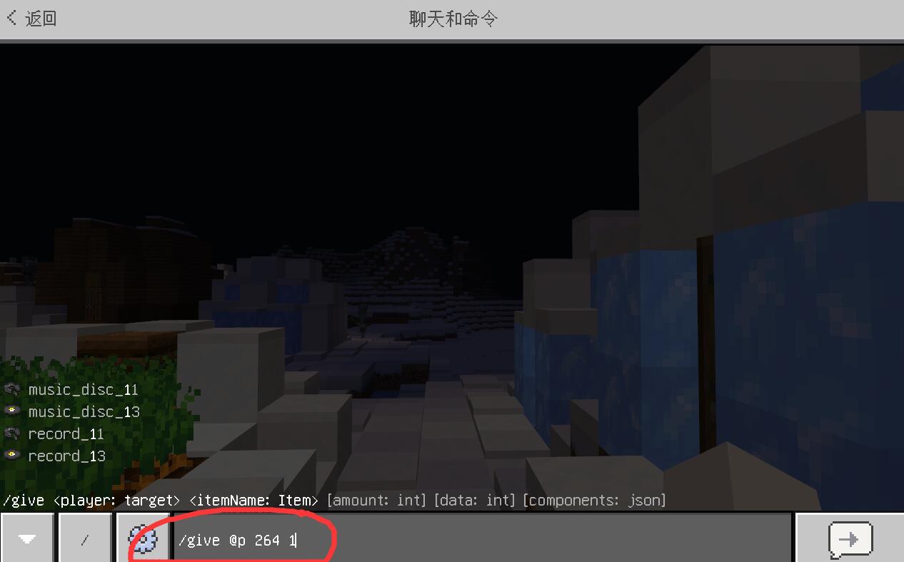 1,首先我們進入我的世界,輸入/give @p 264 1。