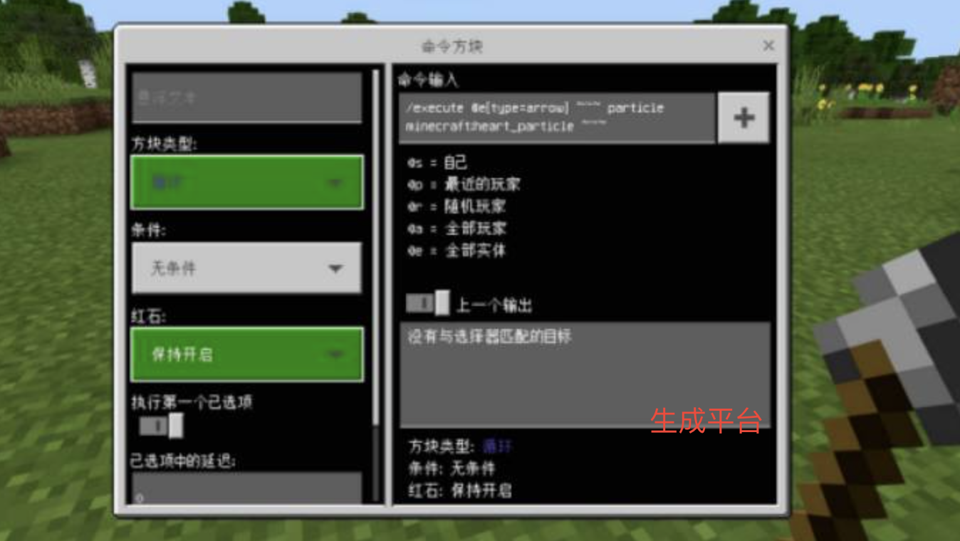 首頁 我的世界 問答 我的世界用指令怎樣生成平台? 2022-08-23 我的世界遊戲生成平台是比較簡單的,打開聊天欄輸入相關代碼/give-玩家名-minecraft:command_block,然後按回車鍵確定應用,這里的玩家名就是遊戲的ID,這樣一個平台就是已經生成了。