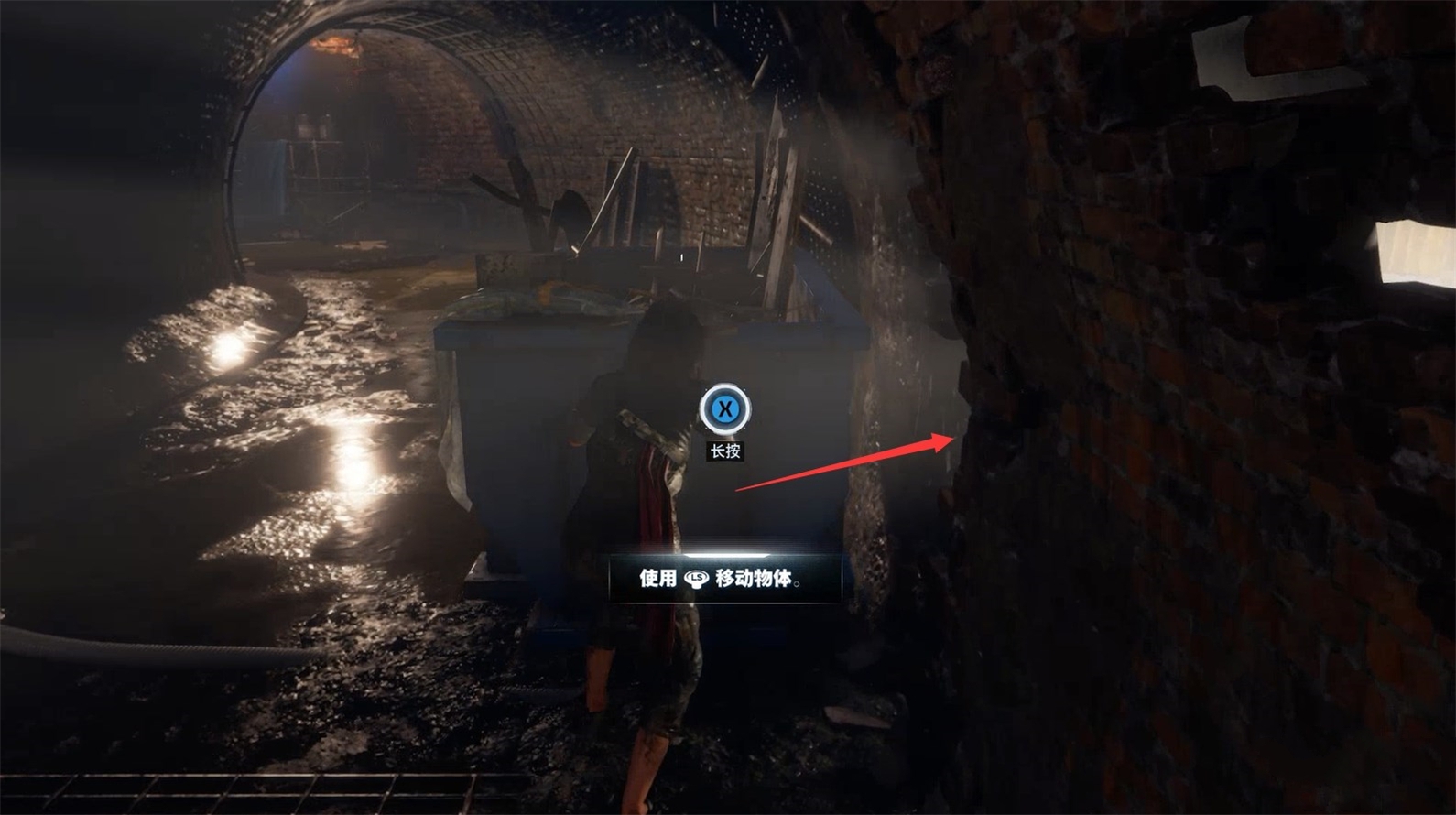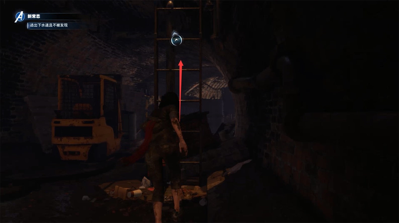 進入下水道也不安全,繼續前進,推開垃圾箱,然後從裂縫離開。