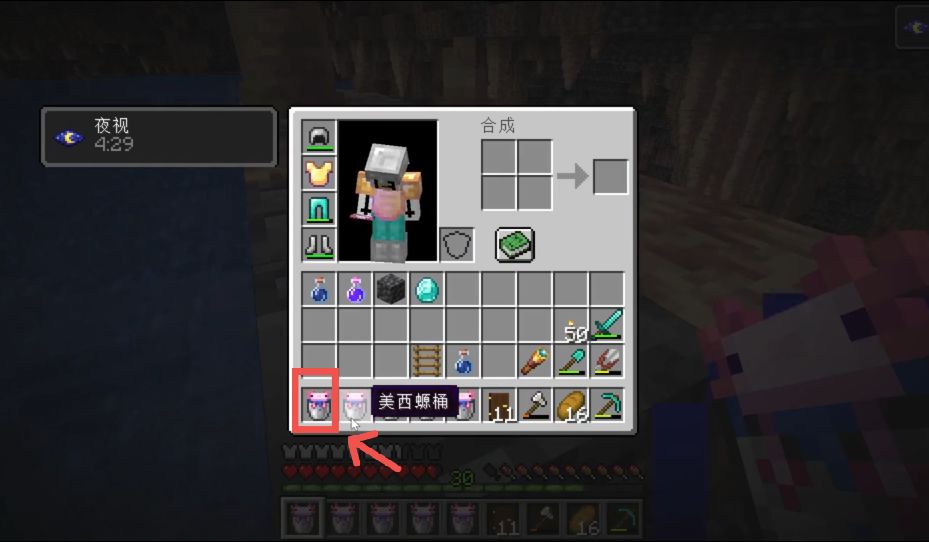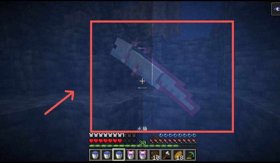 首頁 我的世界 問答 我的世界怎麼抓美西螈? 2022-08-24 1、首先需要進入遊戲界面,帶上水桶後來到水域;2、再潛入水域,就能夠看見美西螈。3、要想捕捉美西螈,只需要將帶下來的空桶拿出來,然後點擊美西螈進行捕捉;4、最後就捉到美西螈了。