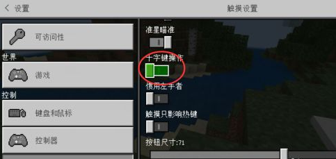 首頁 我的世界 問答 我的世界十字鍵怎麼切換成搖桿? 2022-08-25 切換方法:1.打開我的世界,點擊上面的按鈕。2.打開設置,找到設置按鈕點擊。3.找到觸摸屏按鈕,點擊選項。4.點擊十字鍵按鈕切換。5.點擊按鈕尺寸,進行設置按鈕大小。6.這樣十字鍵就換成搖桿按鈕了。