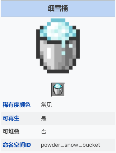 3.細雪在物品欄內沒有物品形式,對著細雪按下選取方塊鍵獲得的是細雪桶。