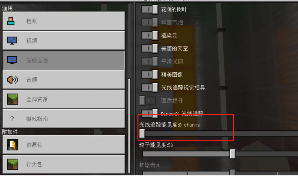 首頁 我的世界 問答 我的世界基岩版光線追蹤怎麼開啟? 2022-08-26 目前能夠開光線追蹤的版本只有電腦基岩版,開啟光線追蹤需要有支持光線追蹤的顯卡,在基岩版我的世界遊戲中,點擊畫面設置,在畫面設置內有一個光線追蹤按鈕,點擊開啟即可。