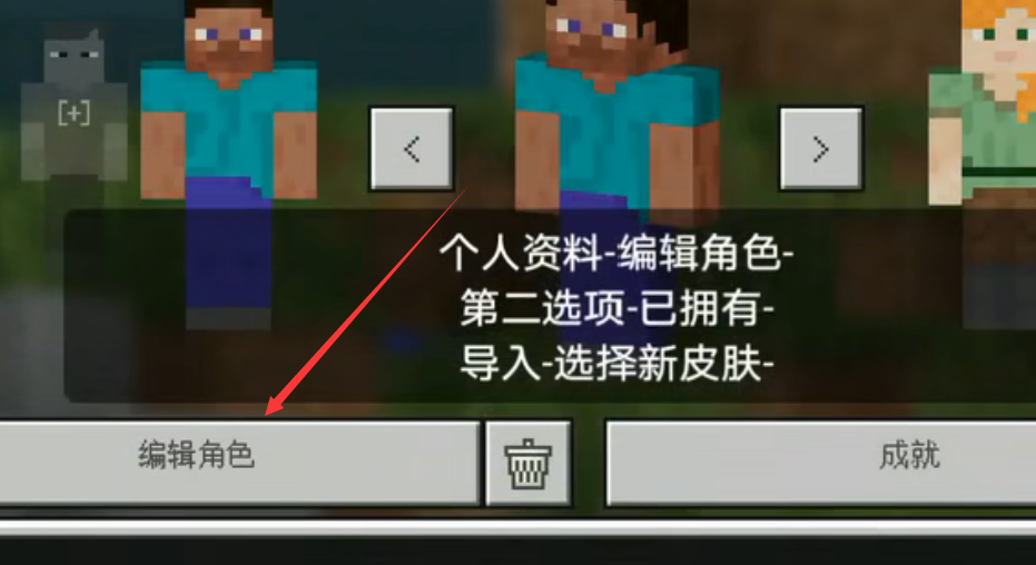首頁 我的世界 問答 我的世界國際版皮膚怎麼導入? 2022-08-26 1.首先打開我的世界遊戲。2.點擊右下角的個人資料。3.點擊編輯角色。4.點擊導入。5.點擊選擇新皮膚。6.選擇正確的模板類型即可。