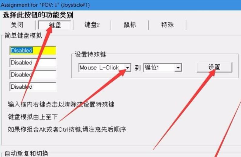 7. 雙擊那個鍵進入設置,比如設置的是左搖桿下滑,按下鍵盤s設置成s鍵
