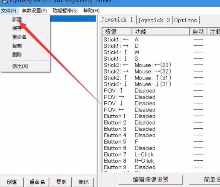 5. 在joytokey右上角右鍵,選擇新建,為了便於區分,設置名稱為我的世界