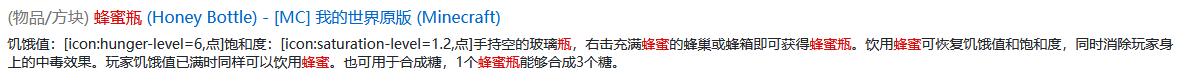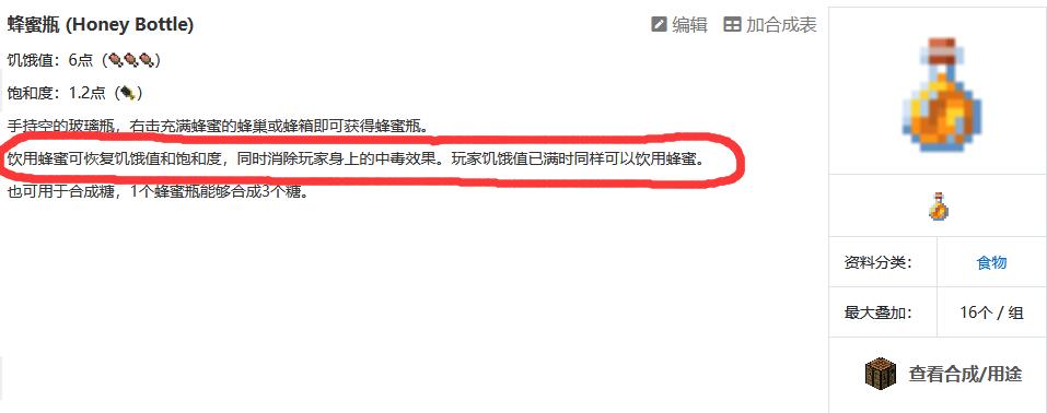 首頁 我的世界 問答 我的世界蜂蜜瓶有什麼用? 2022-08-27 可恢復飢餓值和飽和度,同時消除玩家身上的中毒效果。1,首先我們搜索並進入我的世界蜂蜜瓶的相關說明。2,然後就可以在界面上方發現蜂蜜瓶的作用了。
