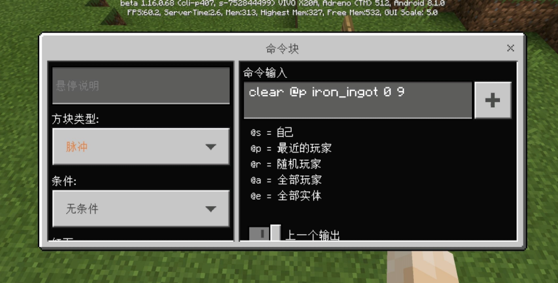 首頁 我的世界 問答 我的世界clear指令怎麼用? 2022-08-27 我的世界clear指令使用方法解析如下:Java版:clear<目標> <物品:NBT> <數量> 基岩版:clear<目標><物品> <數據> <數量>,目標:玩家名稱或目標選擇器,若未填寫則為命令執行者。