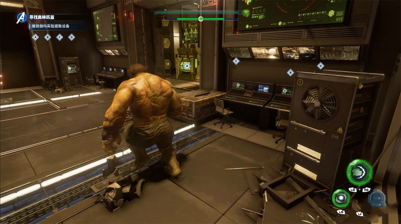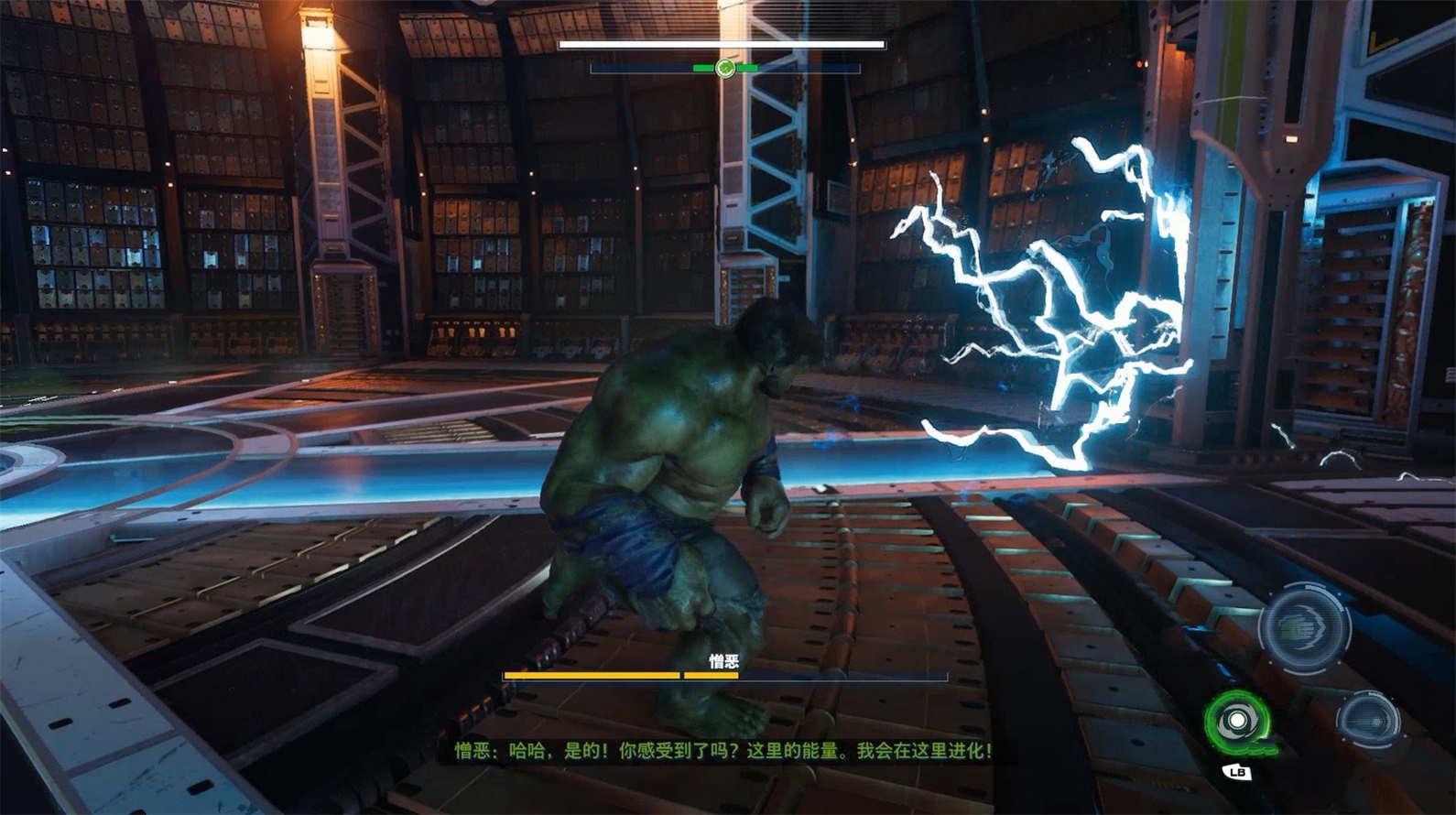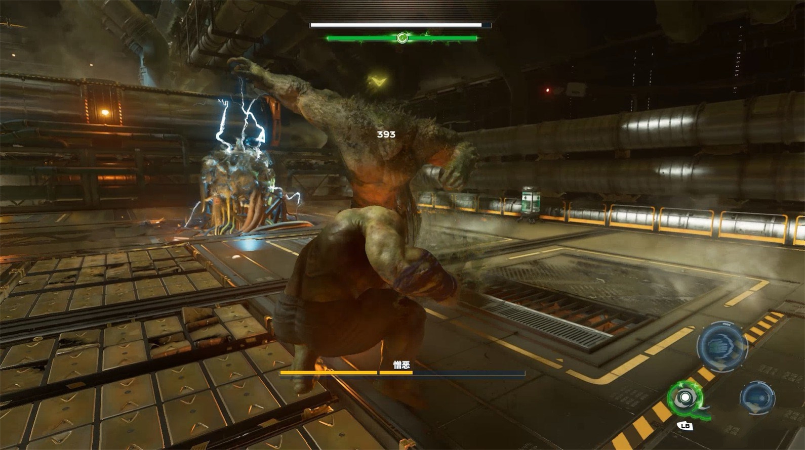 與艙門互動觸發戰鬥。浩克的基本技能是「狂怒」,增加攻擊力、無敵並回血。