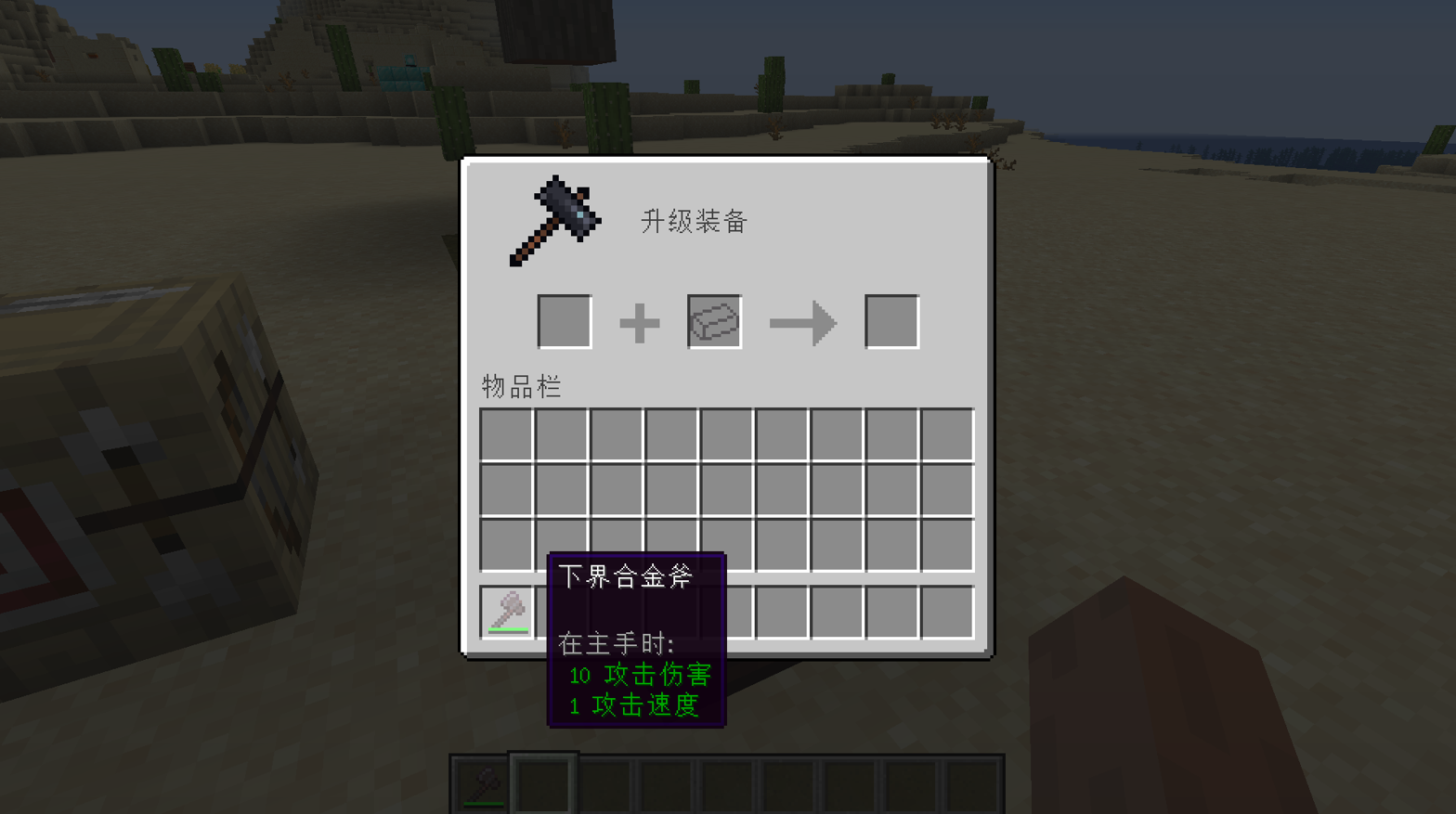 首頁 我的世界 問答 我的世界鍛造台升級裝備配方是什麼? 2022-08-29 1、進入遊戲,玩家打開鍛造台,放入自己的裝備,裝備必須是鑽石裝備,然後再放入下界合金錠,可以看到可以升級為下界合金裝備。2、下界合金裝備會提示原本武器的基礎屬性。