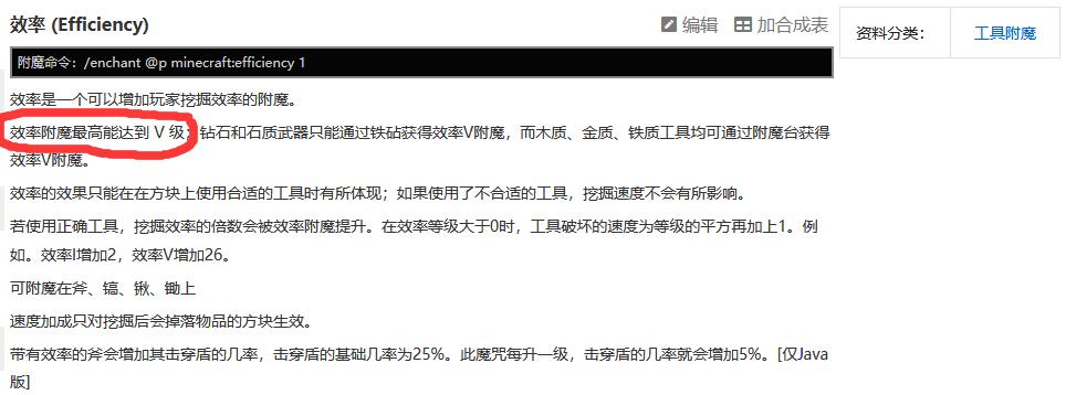 我的世界效率最高為5級。